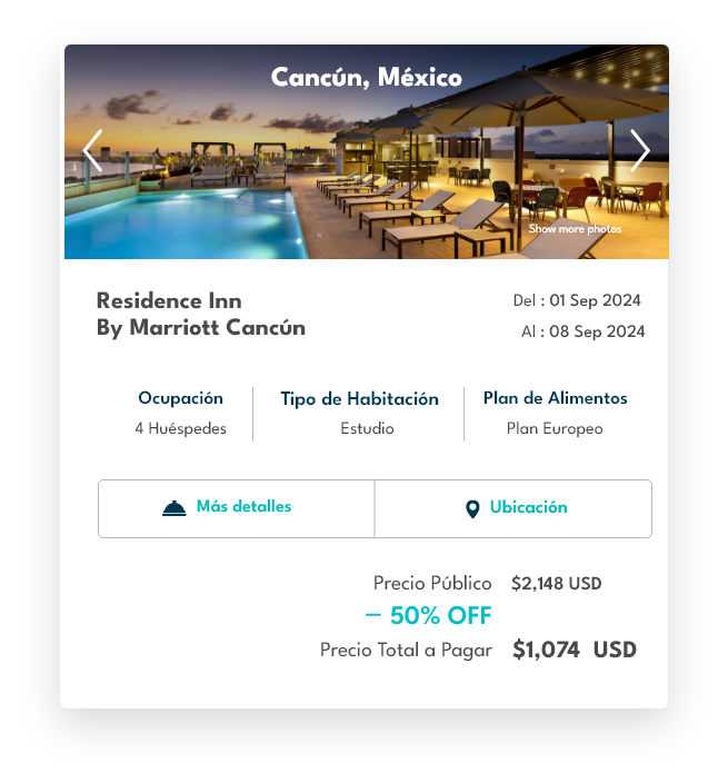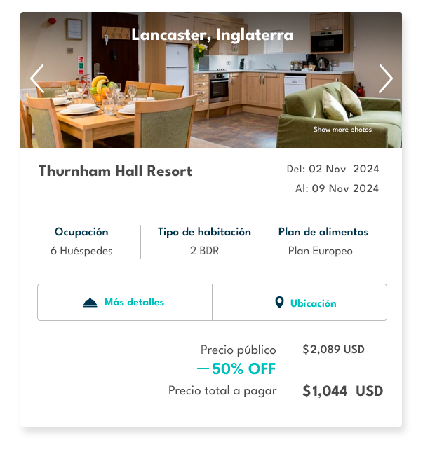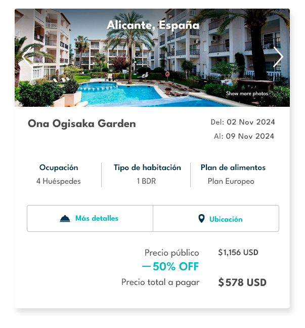 Has obtenido un FABULOSO DESCUENTO del 50% para disfrutarlo en una gran variedad de alojamientos, especialmente diseñados para ti.